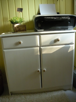 TV-tasona toiminut kaappi sai uuden ilmeen ja on tulostimen pöytänä nyt postaushuoneessa. Kuvia